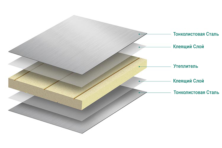 4.Наполнение - пенополиизоцианурат или пенополиуретан;